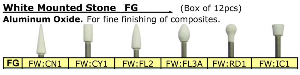 BesQual FG White Mounted Stones (Pack of 12) for Finishing Porcelain, Gold, Silver Alloys, Amalgam and Composites