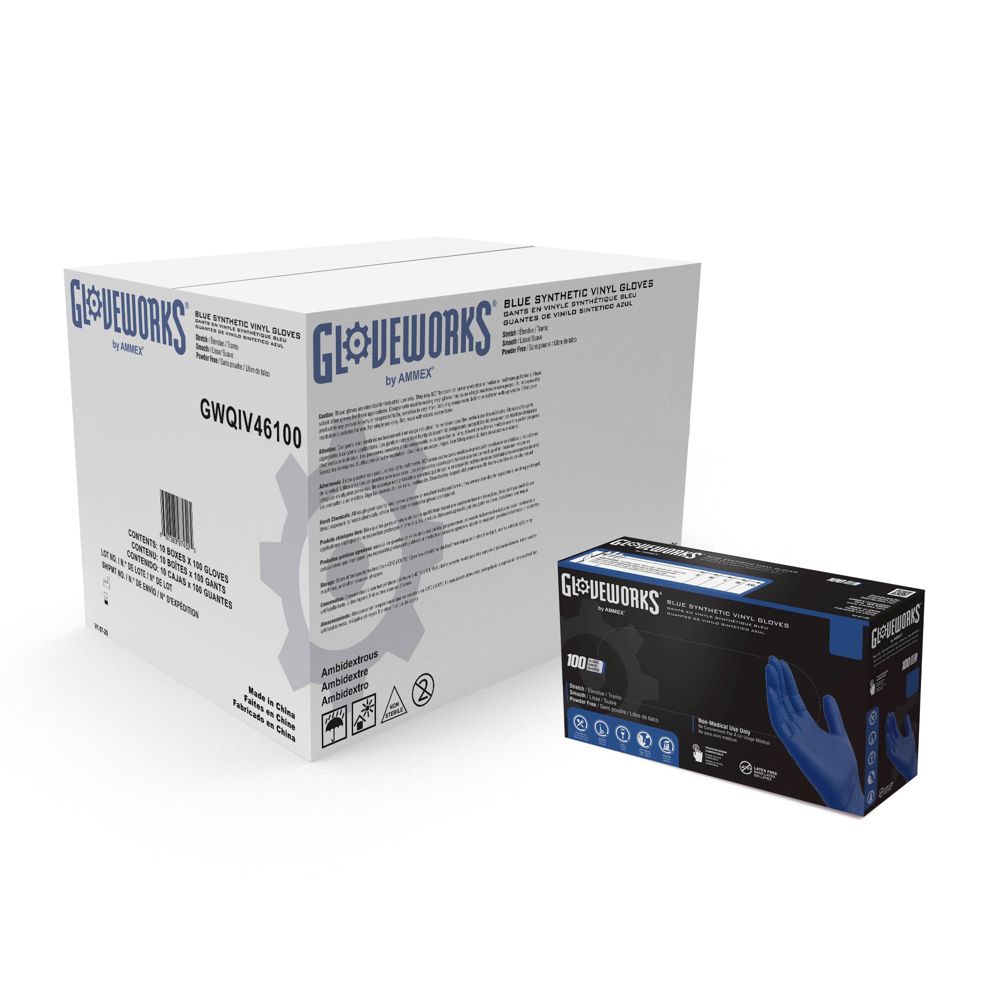 Gloveworks Vinyl Synthetic Latex Free Industrial Disposable Gloves, MEDIUM, Blue Color (Case of 1000)